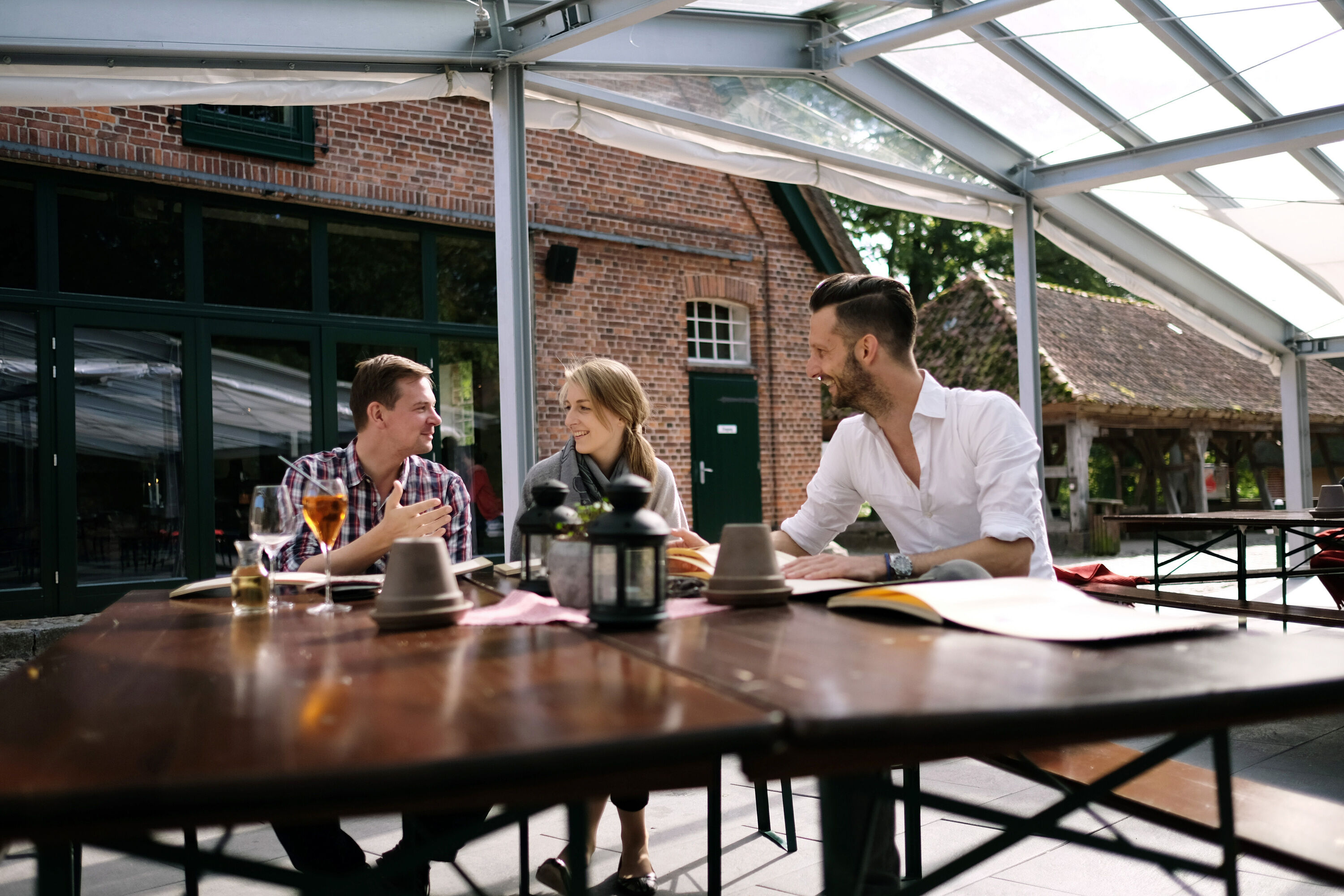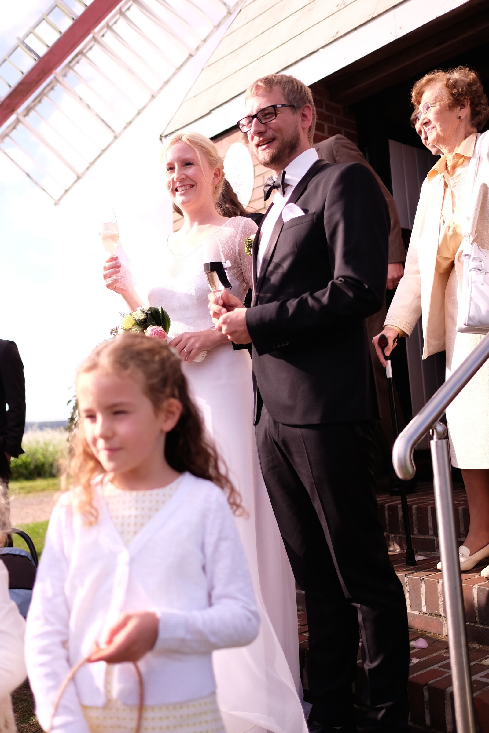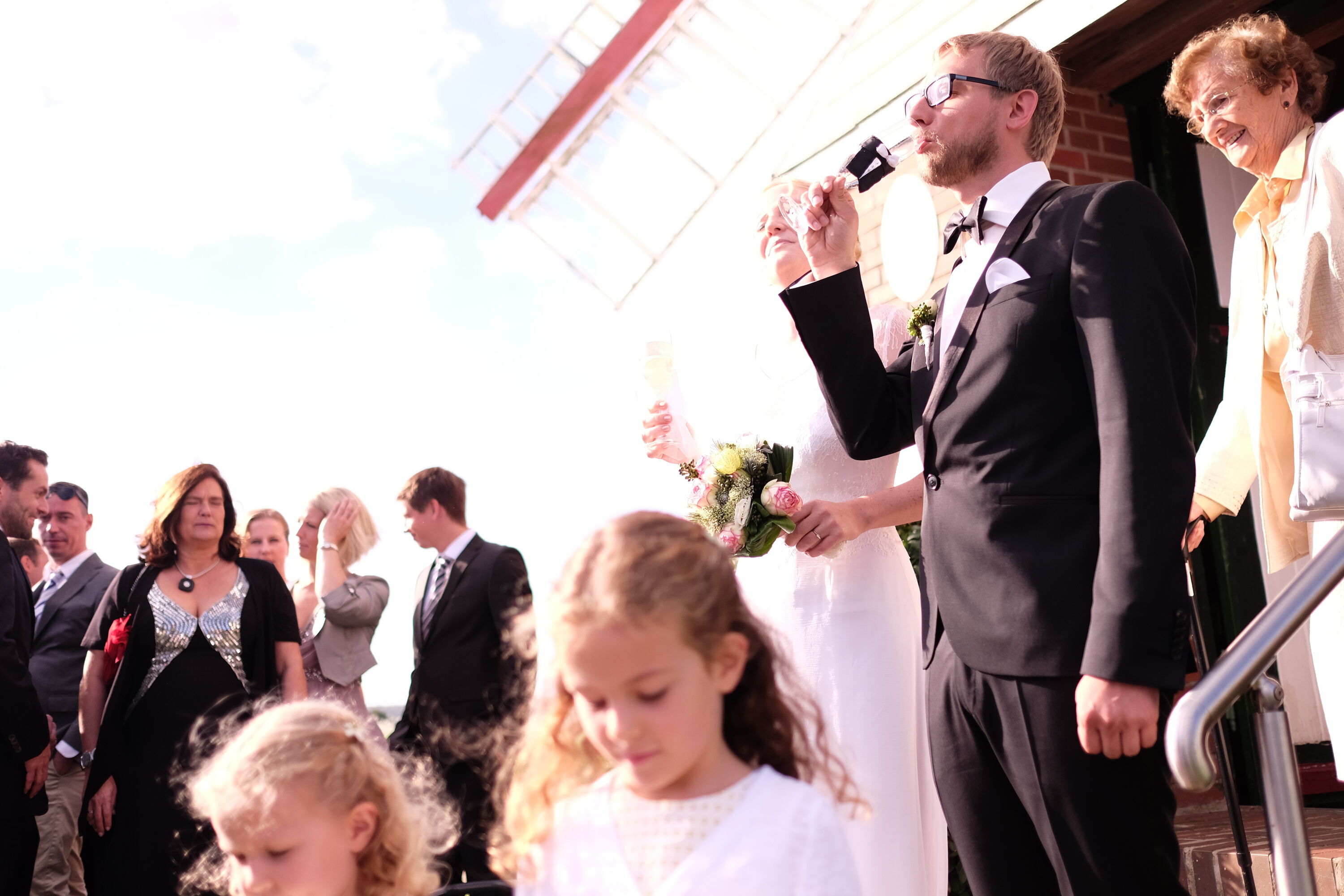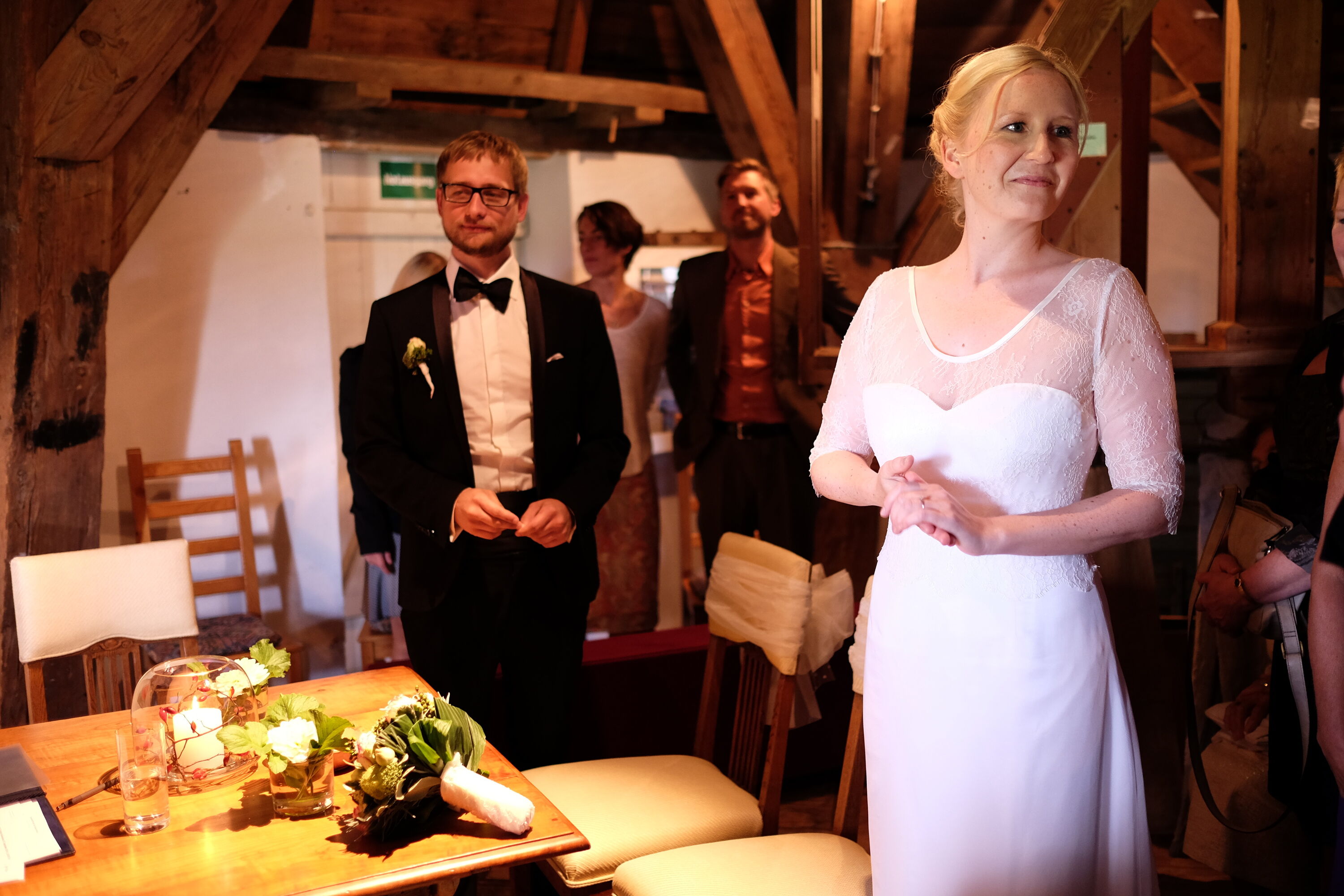Warmtrinken und im Anschluss Trauung in der Mühle.
